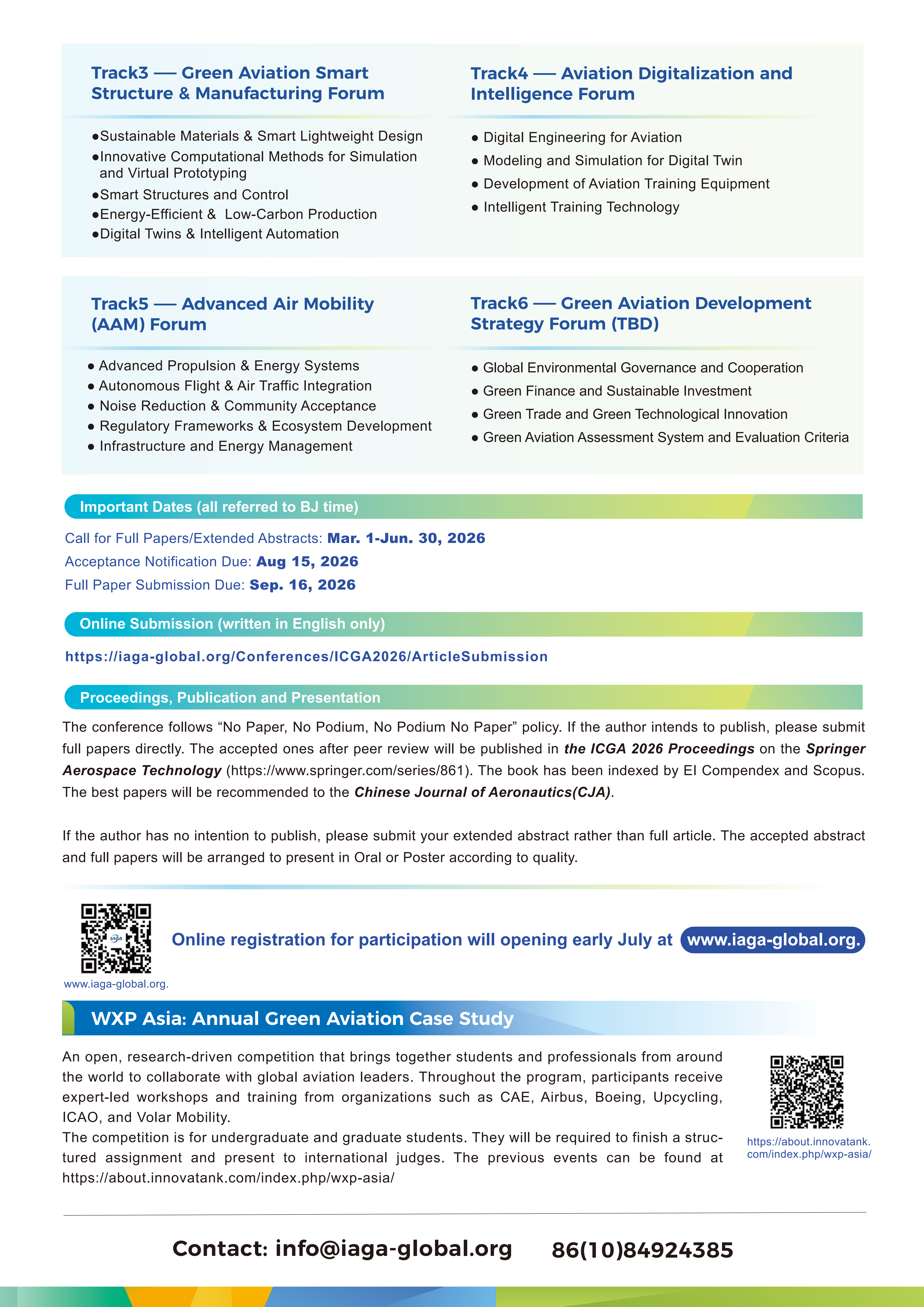 If the author intends to publish with the conference proceedings, please submit full papers directly. The accepted ones after peer review will be published in the ICGA 2026 Proceedings on the Springer Aerospace Technology (https://www.springer.com/series/8613)book series. The book has been indexed by EI Compendex and Scopus.
